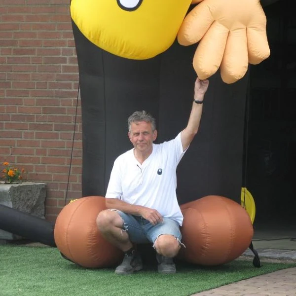 Tijdens het gebruik van deze opblaasbare eyecatcher dient de blower constant aan te blijven staan.