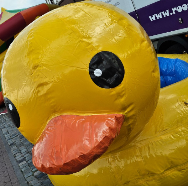 Eventueel ook te huur met kermiseendjes en hengeltjes, dan kan hij gebruik worden als eendjes vissen XXL