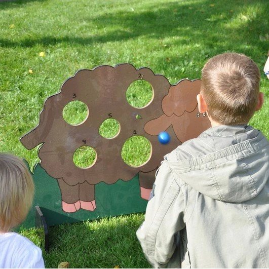 Gooi de ballen door de vacht van het schaap! Zeer goed te gebruiken voor zeskamp of kinderpartijtjes!