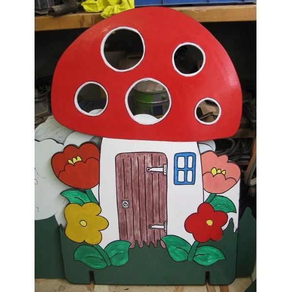 Gooi de ballen door de stippen van de paddenstoel! Zeer goed te gebruiken voor zeskamp of kinderpartijtjes!