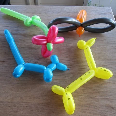 Hondjes, papegaaien, zwaarden, bloemen, pinguïns, giraffen, vissen, olifanten, slingers, hoeden, en nog veel meer.