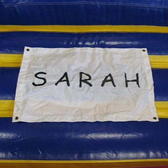 Een banner voor op onze opblaasfiguren om iedereen te laten waarom het feest is. Kies voor een verkeersbord met getal of tekst of een waarschuwingsbord met Jarige Jet of Jarige Job. Leuk als extraatje bij bijvoorbeeld onze Abraham, Jarige vrouw, Jarige Job of Jarige Jet.
