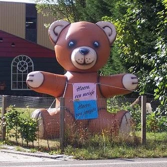 Leuk om de eerste dagen na de geboorte in de tuin of voor de deur neer te zetten, of bijvoorbeeld bij uw kraamfeest. Om het helemaal af te maken kunt u een spandoek op de beer bevestigen met de tekst: