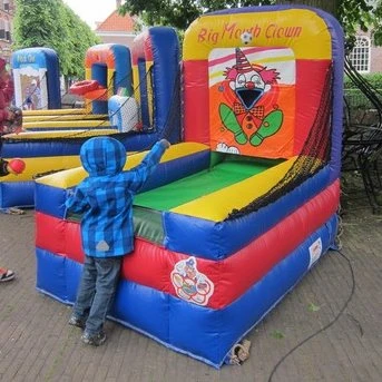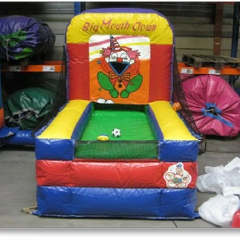 Werp binnen een minuut zoveel mogelijk ballen door de mond van onze vrolijk lachende clown.