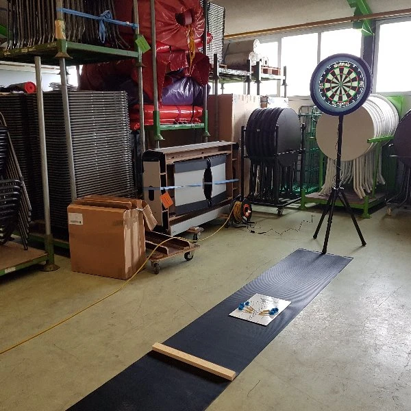 Hulp bij op- en afbouw Dartbord op standaard p.s.