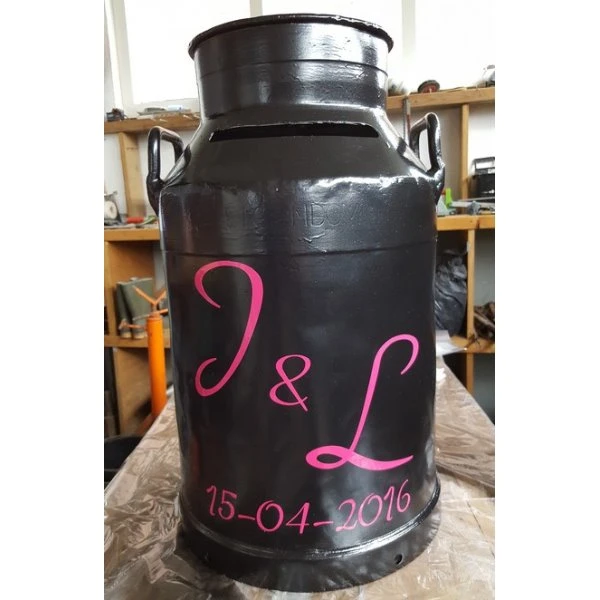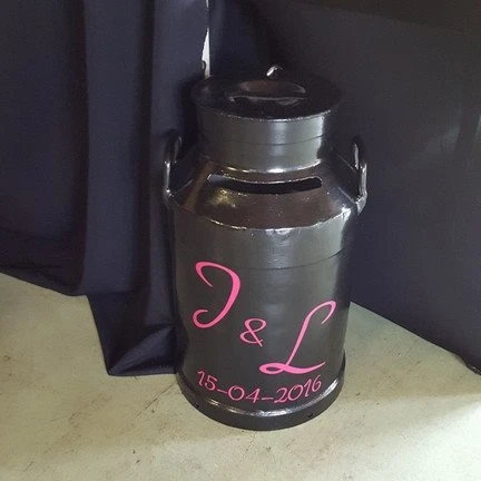 Geen standaard enveloppendoos op uw huwelijk maar een heuse melkbus voorzien van slot om uw enveloppen in te deponeren tijdens de feestavond.