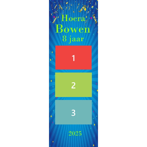 * Uiteraard komen op de plekken met 1,2 en 3 jullie foto's te staan.