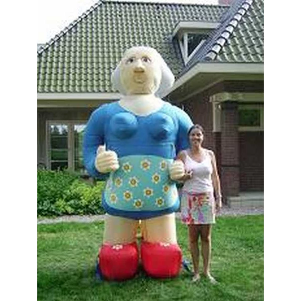 Dit levensgrote opblaas exemplaar is weer eens wat anders dan zelf een jarige vrouw in elkaar knutselen. Leuke eyecatcher om voor de deur van de jarige of op de feestlocatie neer te zetten zodat iedereen weet dat het feest is.