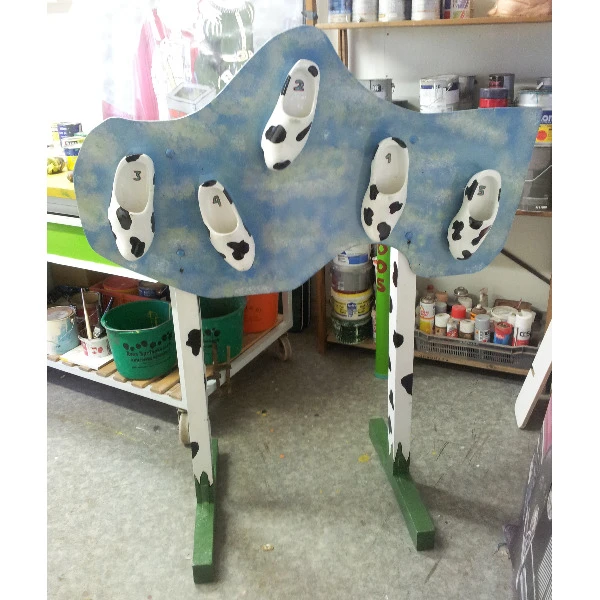 Probeer vanaf een afstand zoveel mogelijk balletjes in de klompen te gooien. Het klompenbord wordt geleverd inclusief 2 vrolijk geschilderde palen zodat het bord kan worden opgehangen.