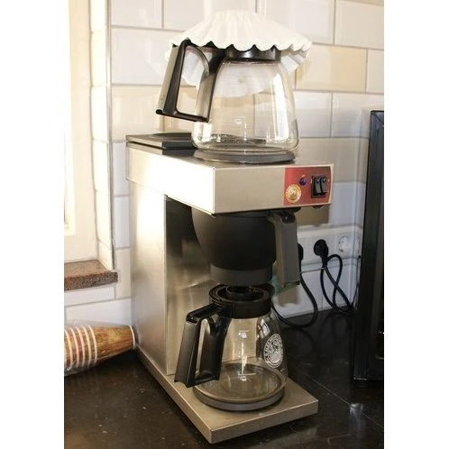 De machine wordt geleverd inclusief filters en 2 koffiekannen, dus terwijl u inschenkt loopt de volgende kan alweer vol. De afzonderlijk te bedienen warmhoudplaten houden de gezette koffie perfect op temperatuur.