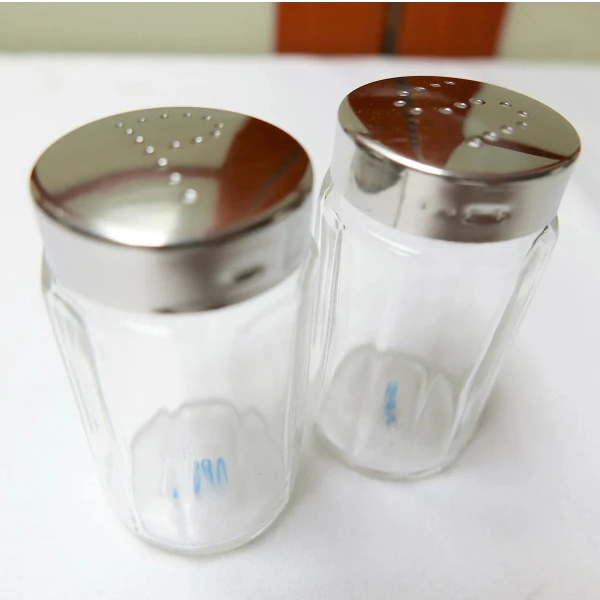 Het verschil in de peper en zoutpotjes is duidelijk zichtbaar door de letters bovenop de deksel.