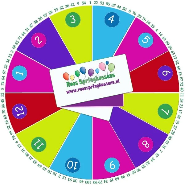 Het rad heeft meerdere functies want is te gebruiken als 5 nummer rad (kleuren), 12 nummer rad (grote cijfers in gekleurd rondje) of als rad met 100 nummers en wordt geleverd inclusief plankjes met de corresponderende nummers.