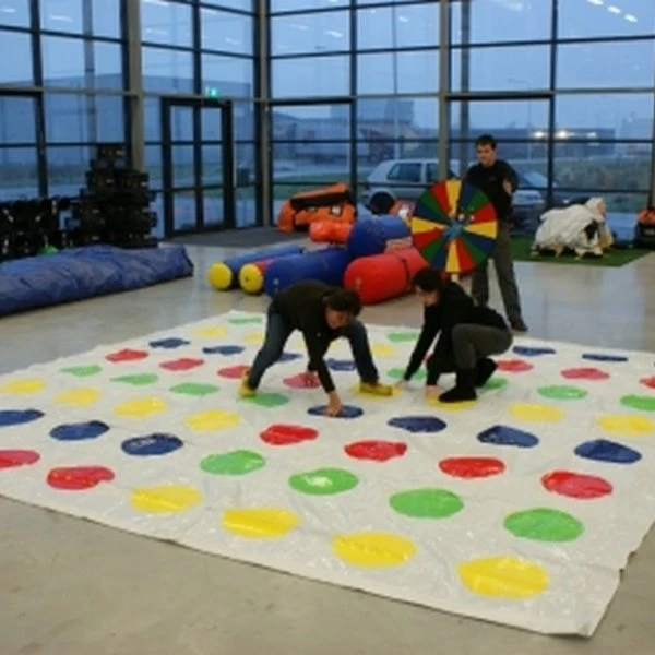 Bijna 4 keer zo groot als een "normaal" twister spel. Zeer leuk voor jong en oud voor personeelsuitje, kinderpartijtje of buurtfeest. Wring je in allerlei bochten, blijf zo lang mogelijk overeind staan en win!