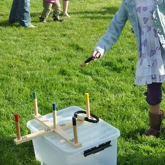 Leuk ringwerpspel voor jong en oud! Probeer goed te werpen met de ringen en de hoogste score te halen.