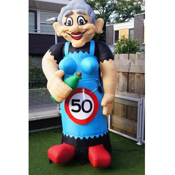 Dit levensgrote opblaas exemplaar is weer eens wat anders dan zelf een Sarah in elkaar knutselen. Leuke eyecatcher om voor de deur van de jarige of op de feestlocatie neer te zetten zodat iedereen weet dat het feest is.