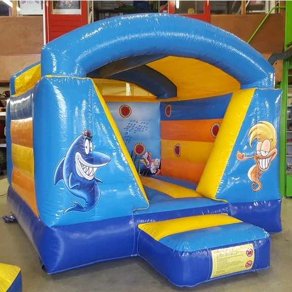Leuk springkussentje met onderwaterfiguren. Het springkussen is overdekt en heeft 1 ingang aan de voorzijde. Zeer overzichtelijk en daarom voor bijvoorbeeld kinderdagverblijven een echte aanrader.