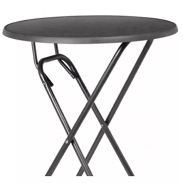 Zeer mooie statafel met zwarte poten en een antracietkleurig blad. Deze statafel zorgt ervoor dat de feest- of vergaderlocatie een zeer chique uitstraling krijgt.
