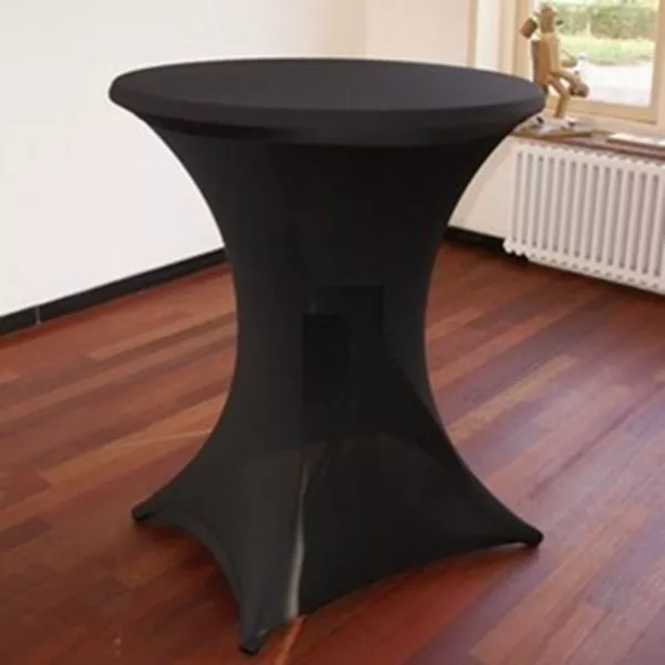 Zeer mooie statafel met zwarte poten en een antracietkleurig blad. Deze statafel zorgt ervoor dat de feest- of vergaderlocatie een zeer chique uitstraling krijgt.