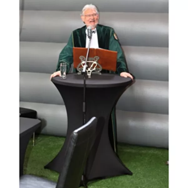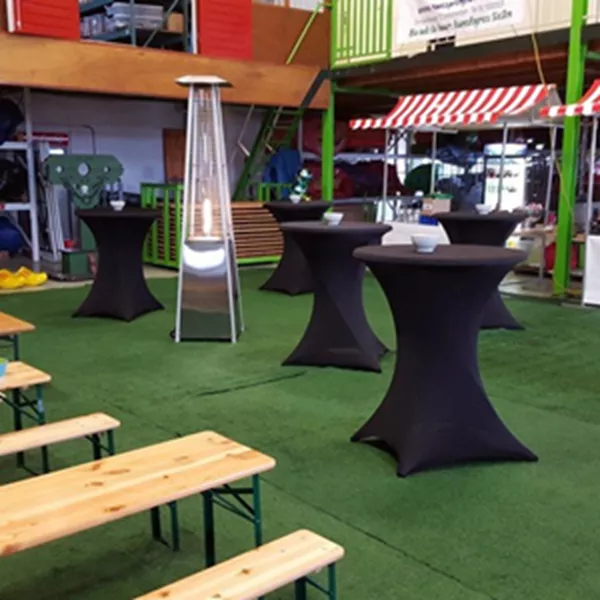 Rok met strik t.b.v. statafel met een diameter van 85 cm. Een mooie aanvulling op onze statafels. De rokken zijn behandeld met brandvertragend middel.