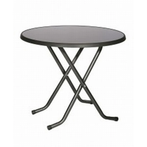 Zeer mooie terrastafel met zwarte poten en een antracietkleurig blad. Ideaal in combinatie met onze klapstoelen.