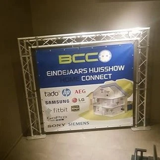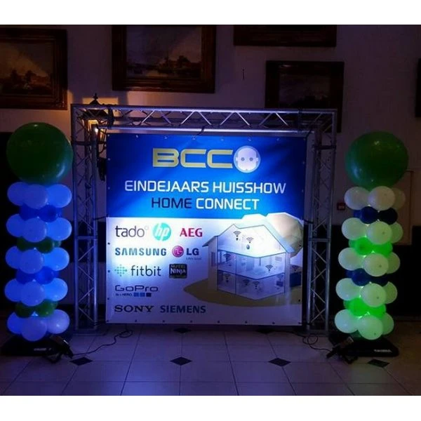 Zeer stabiel frame voor het ophangen van bijvoorbeeld lampen of een spandoek met reclame.