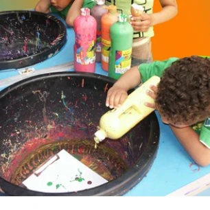 Kinderen kunnen met deze verfcentrifuge een geweldig kunstwerk maken door verf te spuiten op het papier dat in de cabine wordt rondgedraaid.