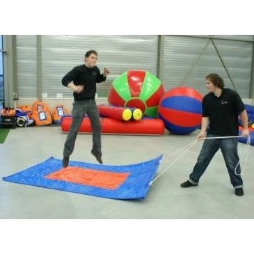 Springen! Maar wel met z’n allen tegelijk want anders kom je niet vooruit. Vorm teams van minimaal 3 en maximaal 7 personen. 1 iemand neemt het touw in handen en de rest neemt plaats op het vliegend tapijt. Spring met z’n allen tegelijk omhoog zodat het springtapijt vooruit getrokken kan worden. Samenwerking is hierbij een absolute must dus zeker voor teambuilding, wedstrijdjes of een zeskamp een absolute aanrader.
