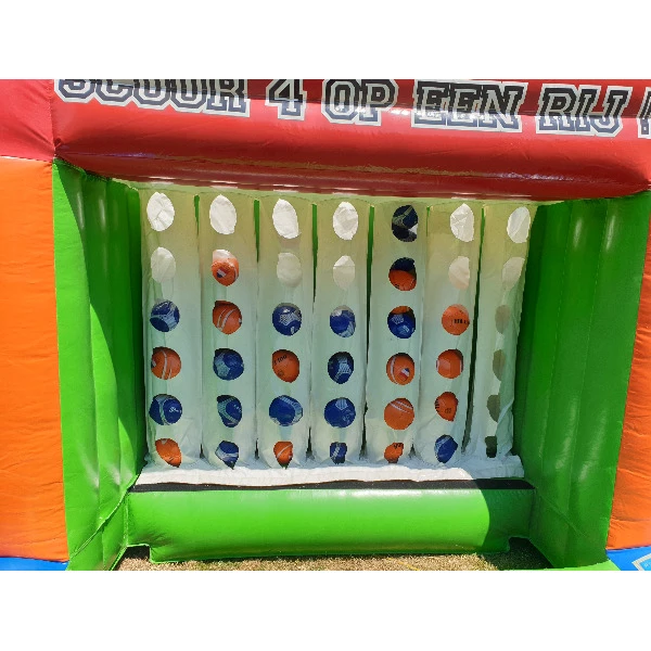 Deze mega vier op een rij kan op verschillende manieren worden gebruikt. Gooi of schiet de ballen bovenin het spel en krijg zo snel mogelijk vier ballen op een rij. Het oeroude bekende tafelspel, maar nu in een grote opblaasbare variant.