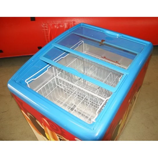 Vriezer voor het verkopen van ijsjes. Ideaal voor Fancy fair op scholen, op de vrijmarkt of langs de kant van de weg, maar natuurlijk ook zeer geschikt voor evenementen. De vrieskist is voorzien van een glazen deksel voor een goed overzicht en wieltjes zodat deze makkelijk verreden kan worden.