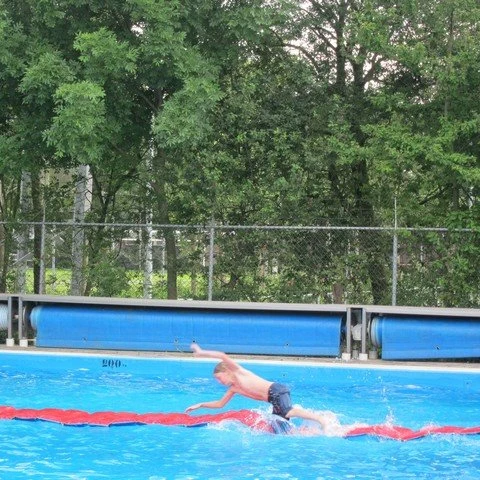 Let op: Loopbruggen/zwembadlopers/loopmatten mogen maar aan één kant worden vast gelegd, de minimale vrije ruimte aan weerszijden dient minimaal 250 cm bedragen, de minimale vrije ruimte aan het uiteinde 350 cm.