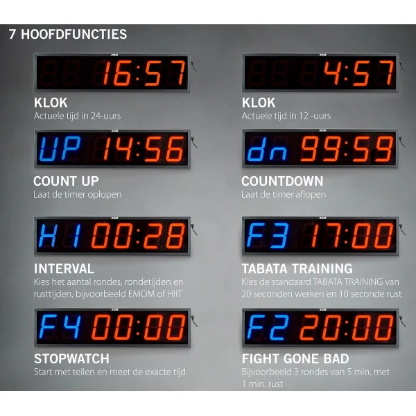 • Count Up Timer: kies tot welke tijd je de timer wil laten oplopen. (Maximaal 99 minuten & 59 seconden)