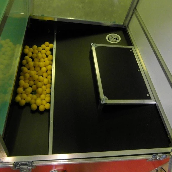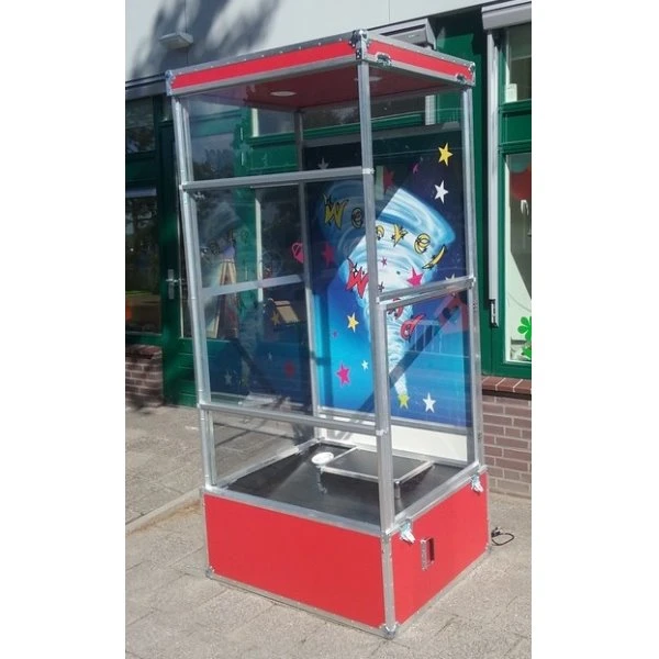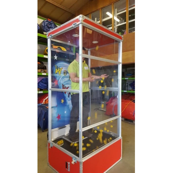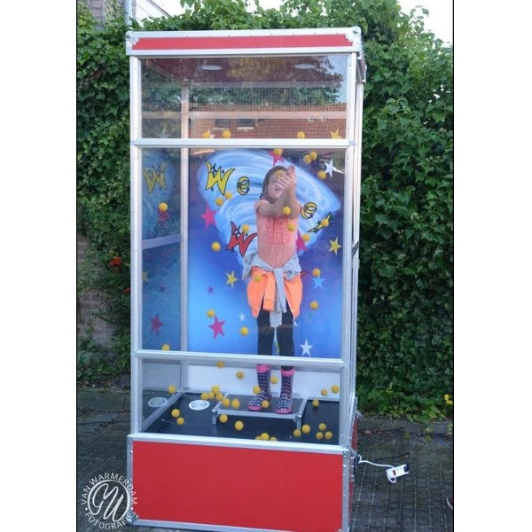 Kassa! Neem plaats op het plateau in de cabine en vang zo veel mogelijk balletjes die door de wervelwind omhoog worden geblazen. Het is nog niet zo makkelijk als het lijkt.