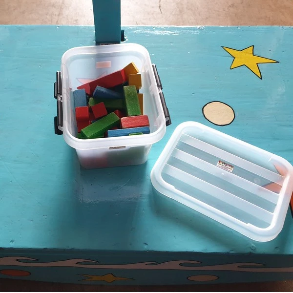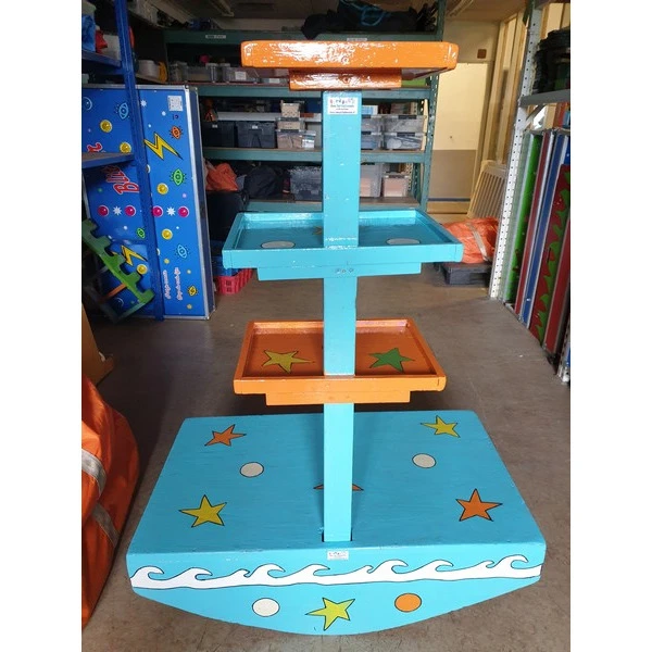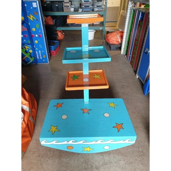 Neem plaats op het platform en stapel zoveel mogelijk blokjes op de Wiebeltoren. Dit lijkt makkelijk maar is best lastig als de toren ondertussen flink heen en weer wiebelt. Kleinere kinderen kunnen zittend plaats nemen op het platform en gebruik maken van een van de lager niveaus.